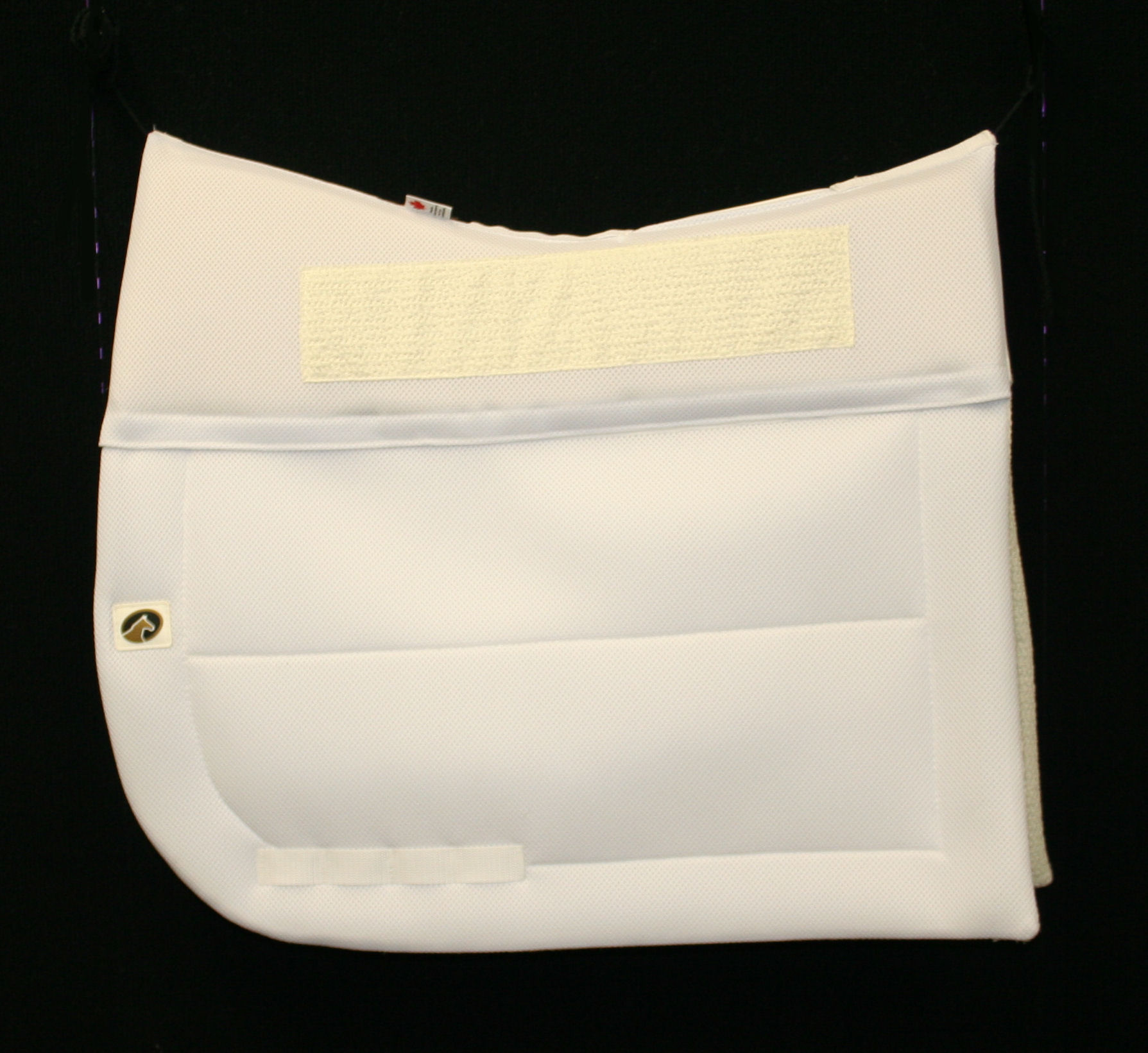 The Ecogold cross country saddle pad combines a flexible shock absorption system with technology that manages moisture and heat dissipation. 100% breathable high-density foam in the seat area protects your horse’s back from impact without adding extra bulk. The underside layer (image below) has a unique air-flow vent system called “COOLMAX” – engineered to quickly dissipate heat and moisture away from the horse’s body, providing a more comfortable ride. Ergonomic shape with ultra-thin flaps (no padding on flaps) provides the rider with a more stable riding position. Don’t just take our word for it, Four Star riders like Boyd Martin use and endorse this pad.