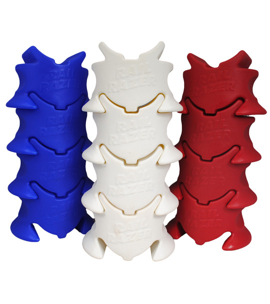 The Rail Razer is on the left, the Riser Block is in the middle (white) and to the right is a jump block.